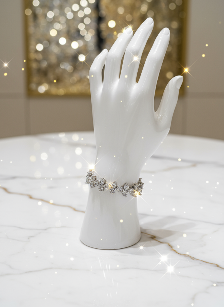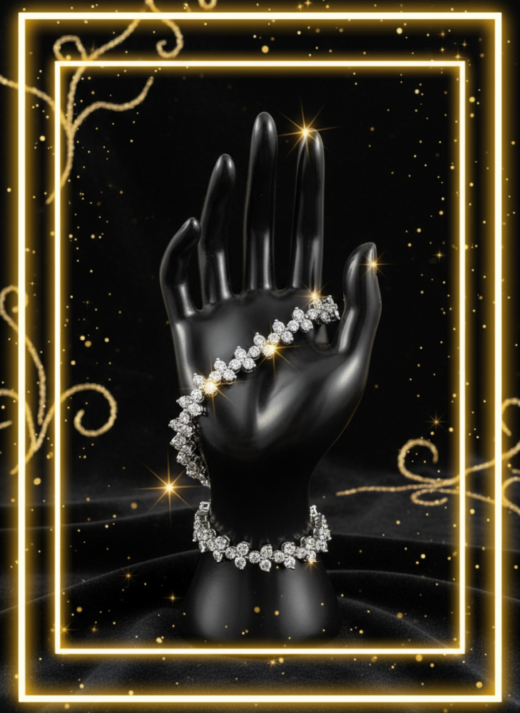 سوار استعراضي فاخر يجمع بين التصميم الكلاسيكي واللمسة العصرية، مثالي لإطلالات السهرات والمناسبات الخاصة. يضفي لمسة من الرقة والبريق على معصمك، ويجعل كل حركة تلفت الأنظار.