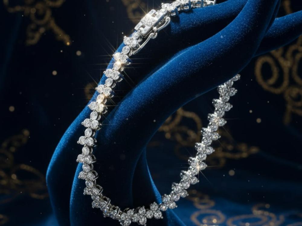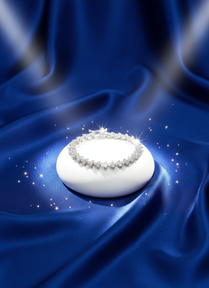 خلفية الحرير الأبيض وبتلات الورود في العرض تعزز من جمال السوار وتضفي أجواءً رومانسية ساحرة ✨💖.