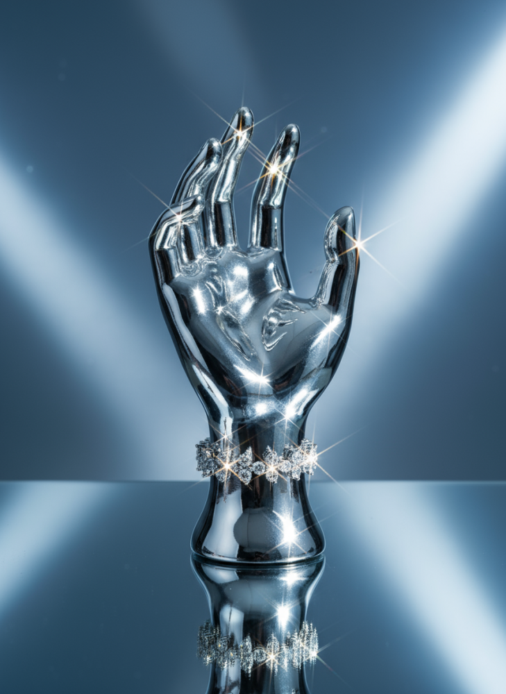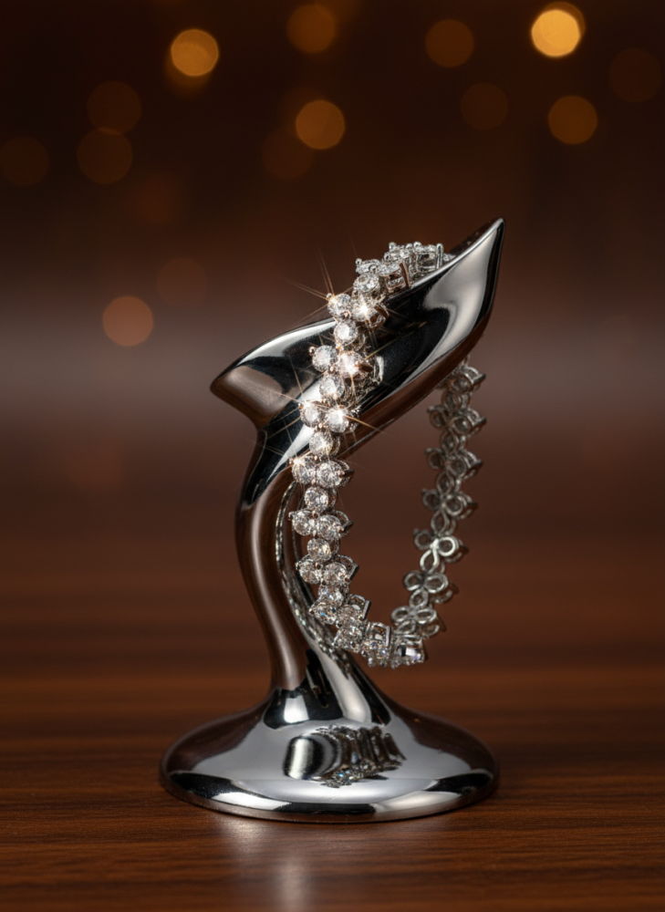 تثبيت محكم بأذرع معدنية دقيقة يضمن انعكاس الضوء بشكل مثالي ويعزز لمعان كل حجر.
